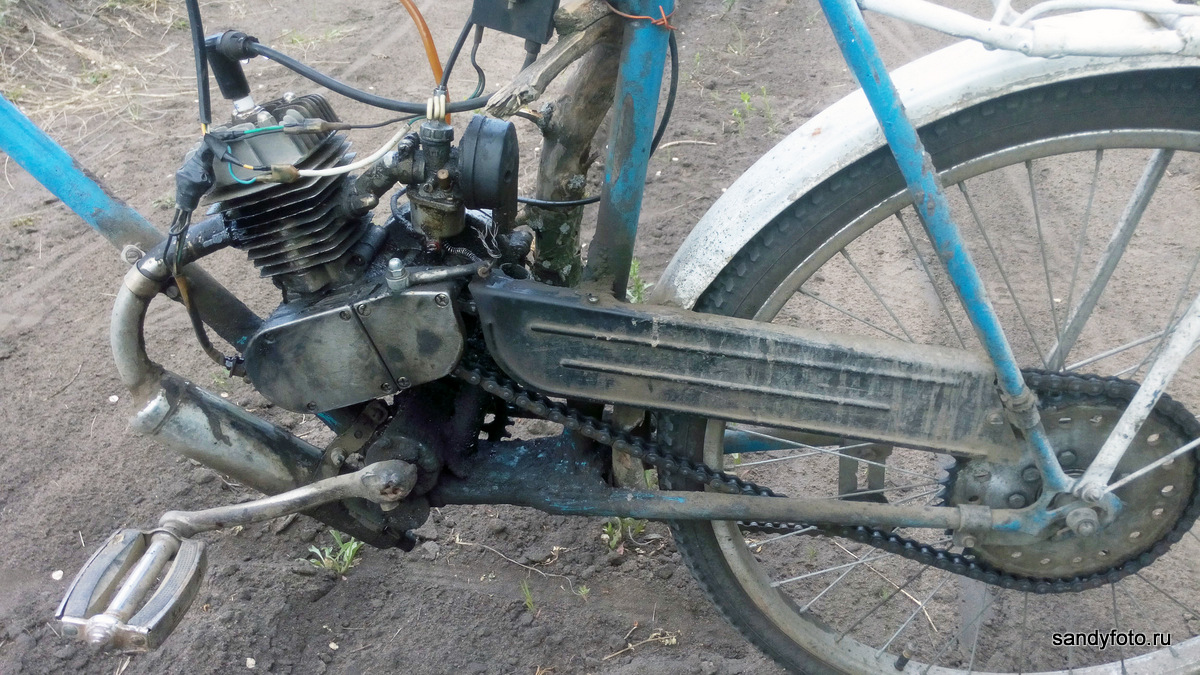 Рассекая родные просторы мне как-то раз встретился до жути чудной аппарат, который с виду толи велосипед, толи мопед. Внимание он к себе привлекал не по-детски и так уж совпало, что владелец кастома был вовсе не против того, чтоб я его чудо-колесницу заснял. Раз уж выдался такой случай, я использовал возможность, только вот материалы долго лежали без дела, но всё ж таки сегодня вы их увидите. Давайте посмотрим, что ж это за необычный такой кастом-байк.
